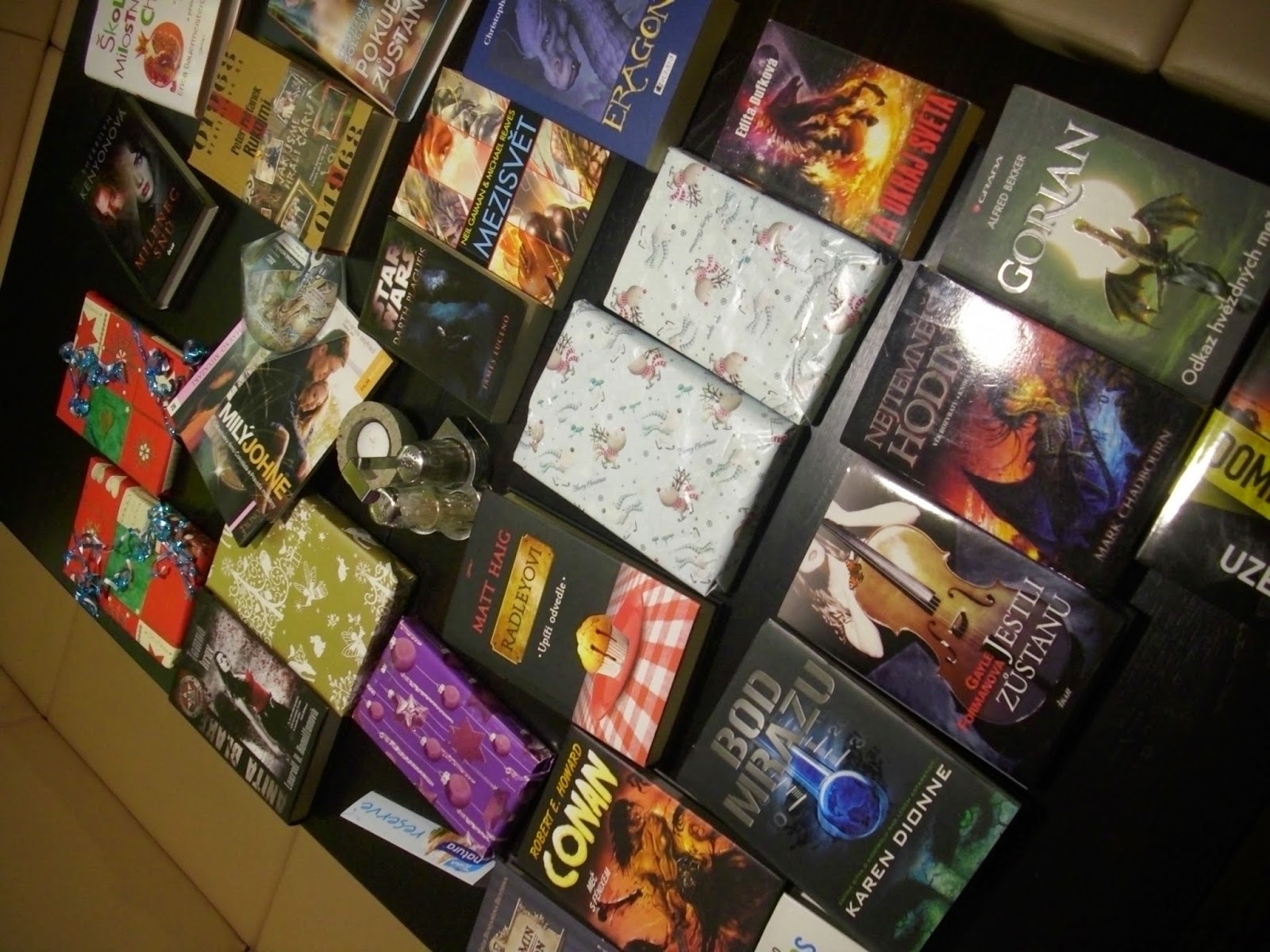 Do třetice jsme pak odpovídali na 9 vánočně knižních otázek. Tady jsem zjistila, že jsou moje znalosti dosti omezené, takže to musím do příště napravit. Na konci všech soutěží jsme si pak mohli rozebrat zbylé knihy. A to jsem si říkala, když jsem jela na sraz, obtěžkaná knihami, že si domů žádnou nepovezu. Zapomněla jsem ale, že jsem s Cathy dělala objednávku na Buxu a pak jsem si i pár knih vybrala z tohoto srazu. Celkově se mi sešlo asi šest kousků.